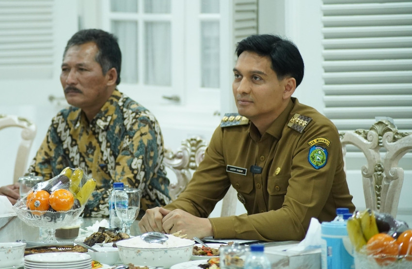 Bupati Indramayu Lucky Hakim bersama Wakil Bupati Syaefudin menghadiri acara pisah sambut Kepala Kantor Pertanahan Kabupaten Indramayu yang berlangsung di Pendopo Indramayu, Selasa malam (14/10/2025).